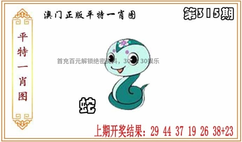 | 311期:九肖 | 虎蛇鸡猴马牛龙猪羊 | 开:蛇37中 |