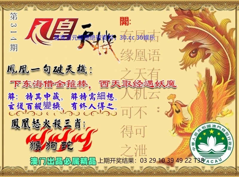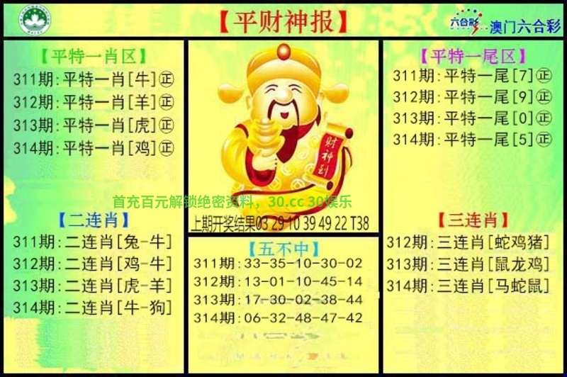 | 314期:三肖 | 牛猪鸡 | 开:發00中 |